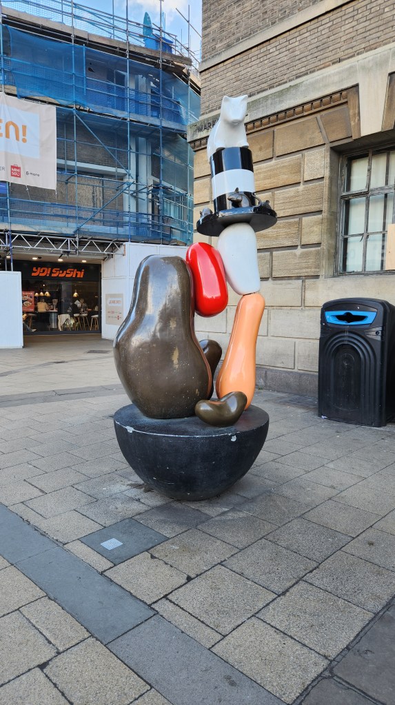 From there, I went for a quick wander around. The market was going on while I was there, but it seemed to be mostly either vegetables (which was not something I could take advantage of as a traveler) or a load of tourist tat. I did a quick swing through there, determined it wasn’t for me, and wandered off to go find lunch. On my way, I encountered a very interesting statue. While I have no idea if it was trying to say anything, I found it delightful.
